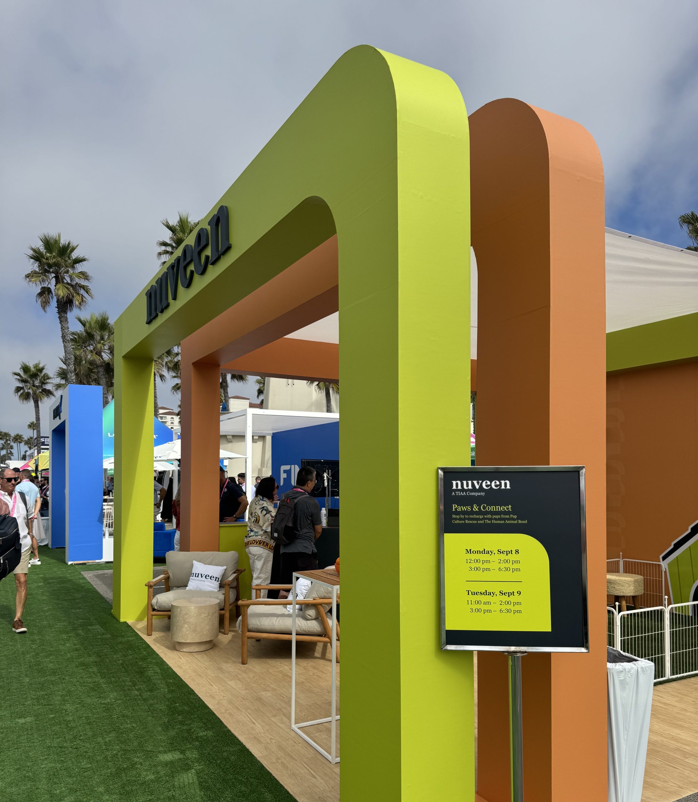 We have to mention the amazing booths that entire marketing teams no doubt spent weeks of not months planning out in every detail The festival floor buzzed with energy and innovative booths – from golf contests to pickleball courts to bow and arrows aimed at ETF tickers, there’s plenty to catch your eye and an equal amount of swag. One highlight: Nuveen brought rescue puppies to their booth, offering attendees a chance to take a break, smile, and connect in a totally unique way.