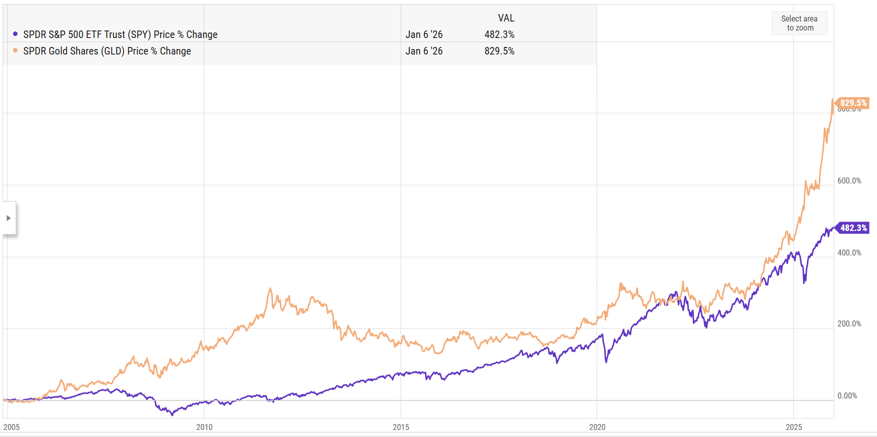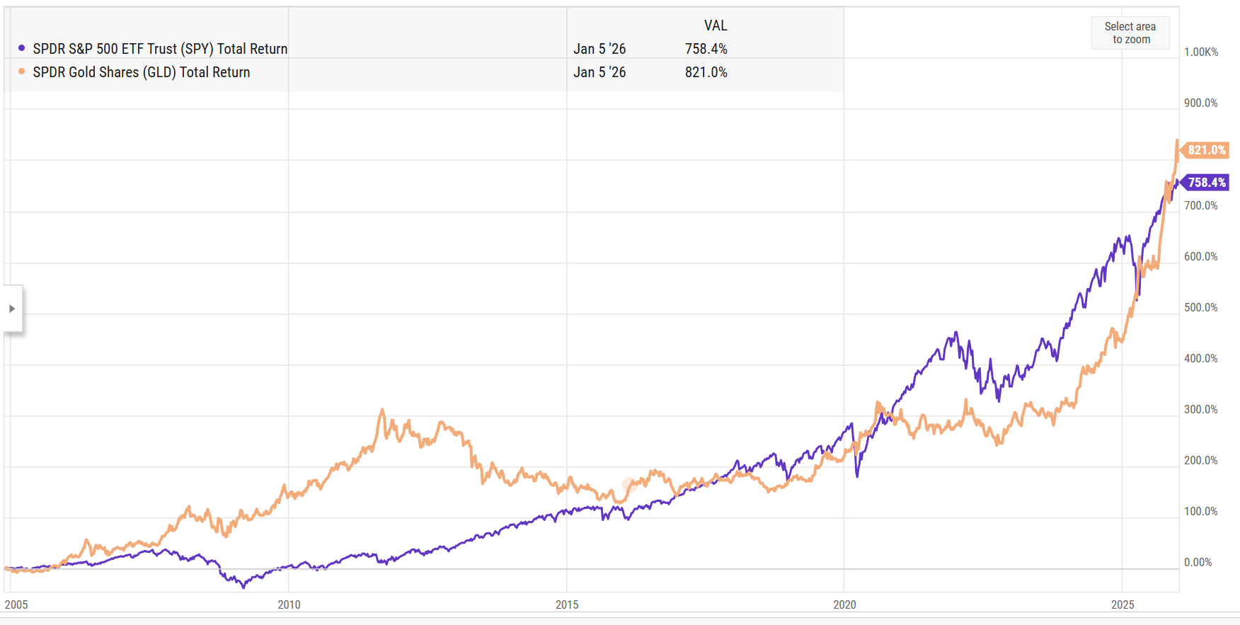 Gold has had a remarkable run in 2025, and that performance has spawned a fresh wave of articles proclaiming that gold has outperformed stocks over 20- and 30-year periods. The headlines are eye-catching, and the underlying data isn’t fabricated. But here’s the nuance that often gets buried: most of that outperformance is price-based. On a total return basis—factoring in dividends reinvested for equities—gold still comes out ahead in some of these comparisons, but the margin shrinks considerably. Gold doesn’t pay dividends or buyback shares; over long horizons, that compounding gap matters.