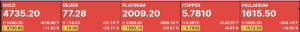 At approximately 12:30pm Friday in Chicago, Gold was off by more than -11%, Silver -33%, Platinum -24%, Copper -7%, and Palladium -20%!