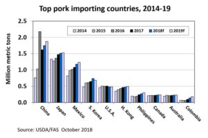 China accounts for just below half of the world’s pork production and is also the top pork importing country. Basically, China consumes A LOT of pork. (For reference, the U.S. produces ~74 million pigs while China has 450-500 million; also, check out these “high-rise hog hotels” in China).