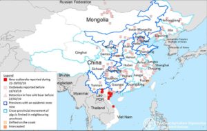 ASF is highly contagious –as in if 1 or 2 of your pigs shows symptoms, you’ll have to get rid of your whole lot kind of contagious – and there’s no vaccine on the horizon. In fact, Spain was hit with this very same swine fever in 1960 with a slow spread peaking in the 1980s. It took almost 35 years to eradicate the disease in-country, as Spain was finally declared ASF-free in 1995. What we learned from ASF in Spain, is that the disease never presents itself the same, and the effort to eradicate the disease is high. And now, ASF is showing up in the largest pork-consuming country in the world, China.