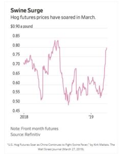 Who’s Tom? Tom is Thomas Chavez of Alternative Capital Advisor’s Strategic Ag program, who put up a 16% number in March (past performance is not necessarily indicative of future results) based in part on his call on the hog markets, which he believed were underpricing the risk of African Swine Fever (ASF) severely curtailing China’s domestic supply.